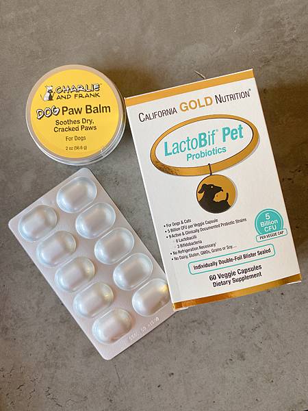 幫牠們選了跟我同品牌的益生菌,跟保養腳掌的狗狗專用腳掌膏。