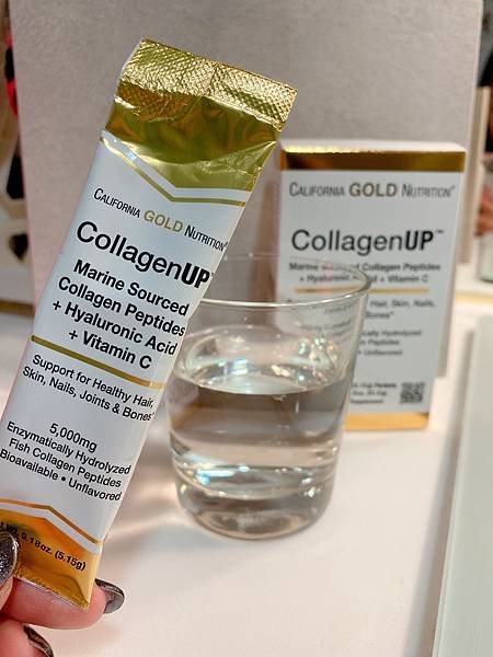 這次選購的是獨立包裝,一包配一杯水或果汁的California Gold Nutrition® CollagenUp™ 袋膠原含有海洋膠原蛋白+透明質酸+維生素C,無麩質、無大豆添加的膠原蛋白粉。