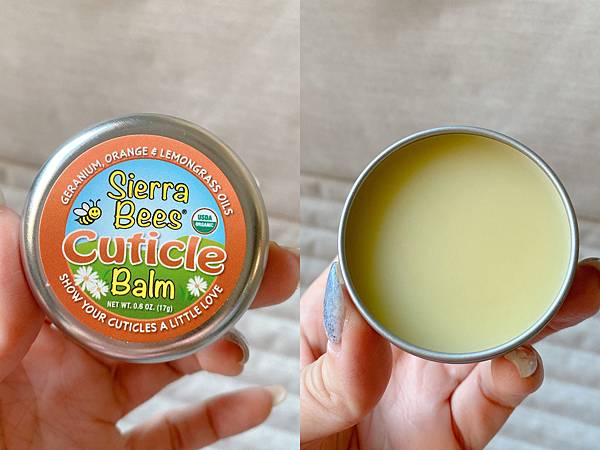 Sierra Bees的角質層護理膏,一挖起來感覺好像很油,整個抹在手上好像也很油,但其實不會,慢慢地搓揉按摩,它其實蠻好吸收的,而且不粘膩。