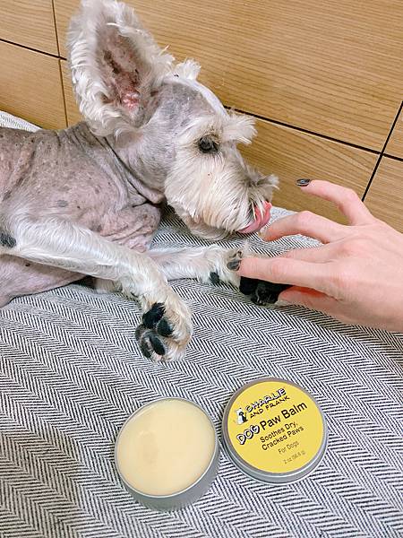 Charlie&Frank寵物狗專用腳掌膏,選購這個的主因,因為兩隻狗每天都要散步三次,14歲的雪納瑞UNO腳掌已經有嚴重的龜裂問題。